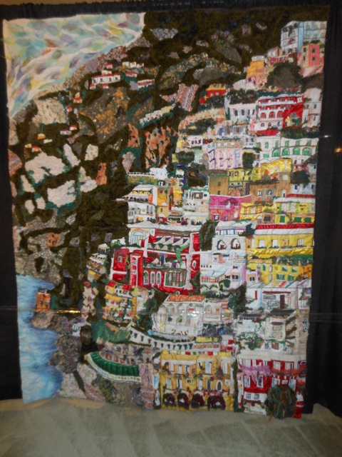 Uit respect voor de makers van de quilts heb ik bij iedere foto de naam en beschrijving, zoals die op de show hing, bijgevoegd. Wanneer je op de foto klikt wordt hij enigszins vergroot en is het makkelijker te lezen. Sommige beschrijvingen waren, vanwege het licht, vaak moeilijk te fotograferen.
