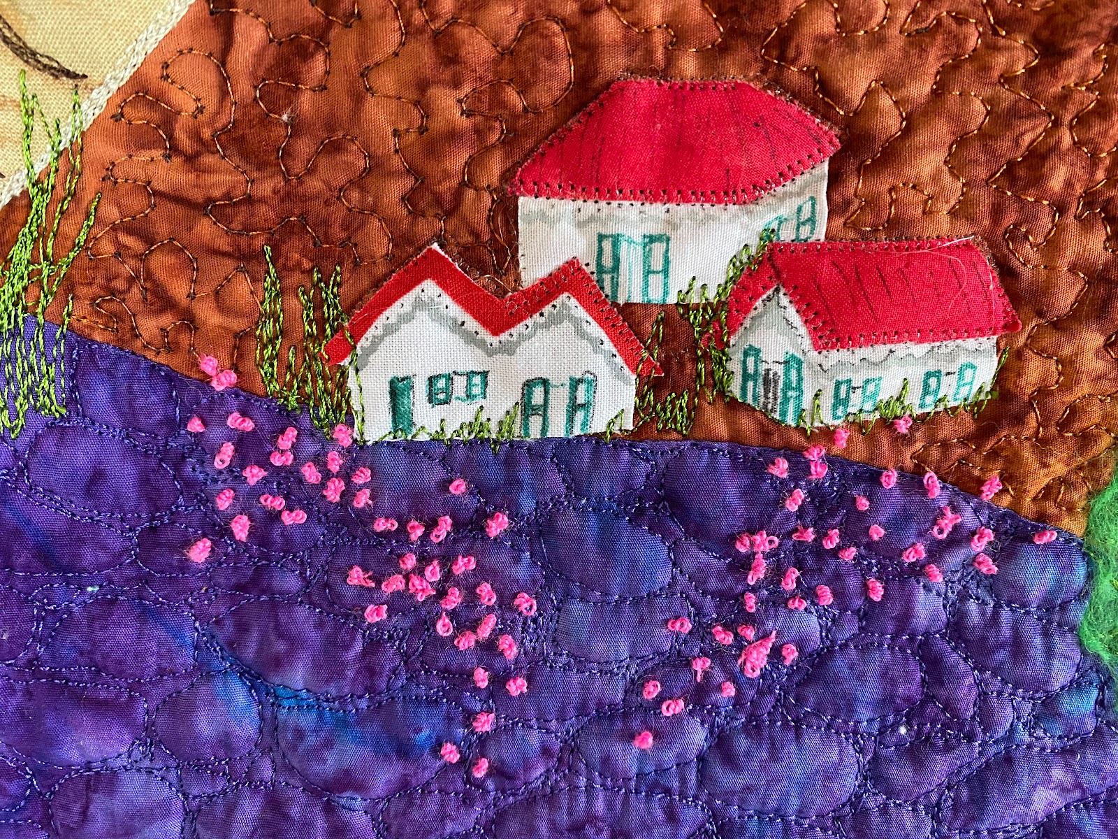 De boompjes in de verte worden alleen machinaal geborduurd.